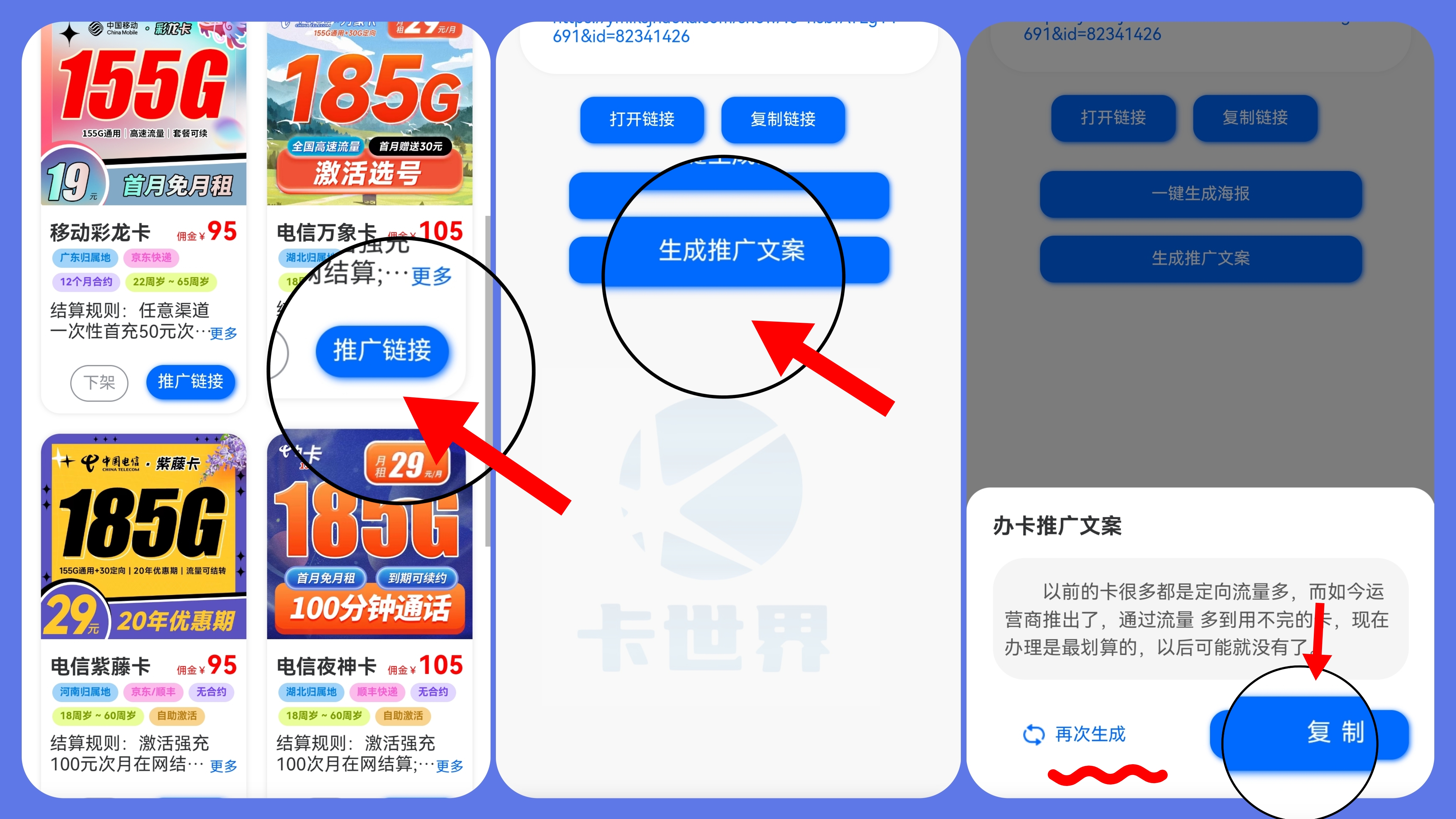 点推广链接--生成推广文案--复制[不满意就再次生成]