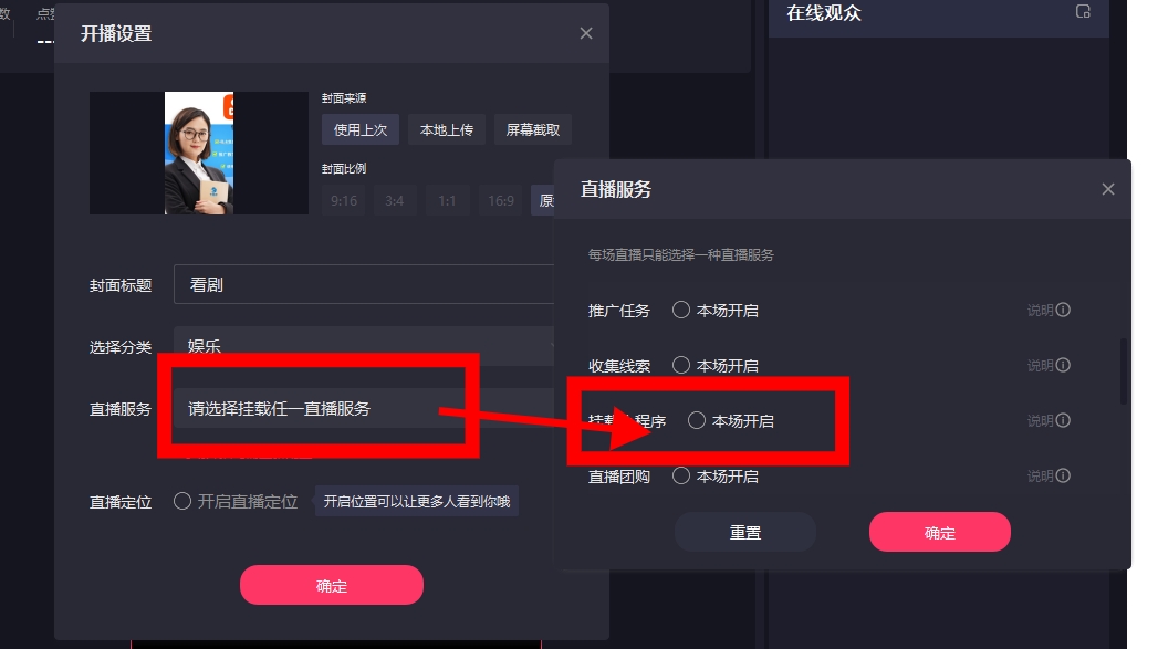第3步:开播挂载小程序