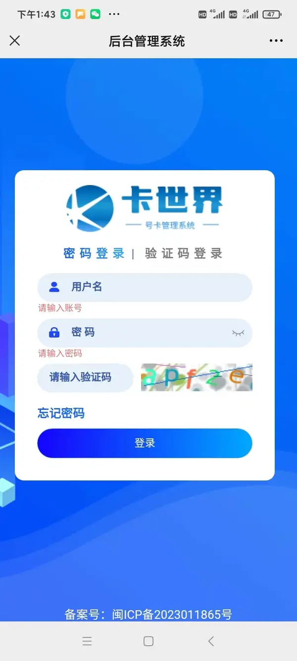 1、登录后,卡世界订单管理系统