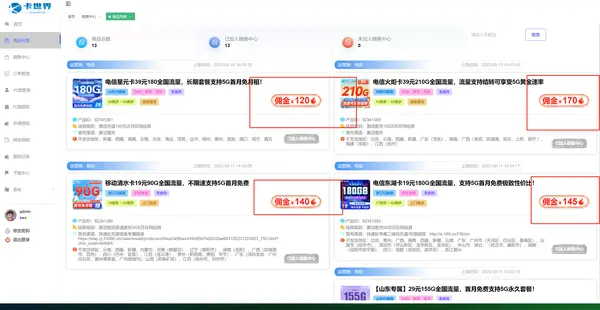 对于流量卡分销平台来说,佣金是绕不过去的选项。卡世界平台是直接和运营商合作,省去很多的中间环节,分为高级代理 普通代理 ,高级代理可以招普通代理 佣金略高 普通代理 只可以销售号卡